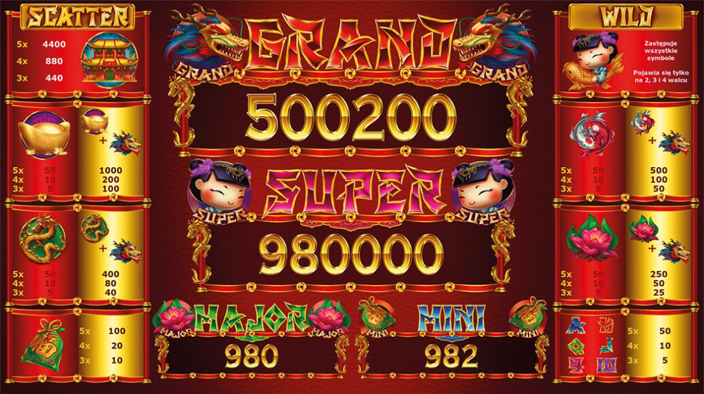 In the magical world of the Far East, the player has the opportunity to choose a win multiplier and a bet, which allow access to higher wins and one of four progressive Jackpots.